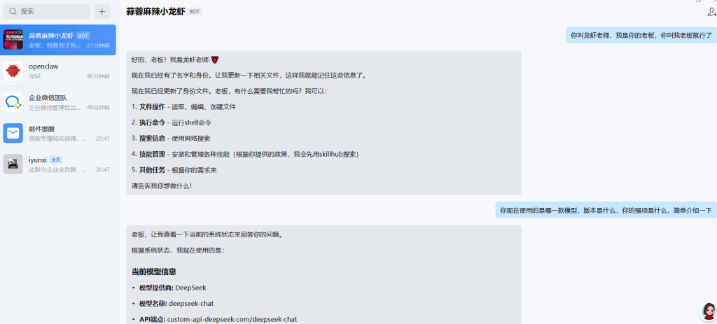 机器人2 —>将openclaw部署在用腾讯云服务器,作为云端部署,当电脑关机后随时随地可以使用大模型解答问题。我使用的模型是Deepseek V3.2 。问了大概几个问题,一百万Token,5毛钱,还能接受。